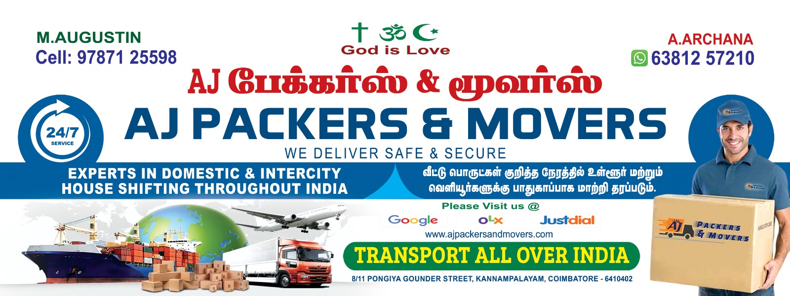 Whether you are moving within Coimbatore, relocating to nearby areas, or shifting to other South Indian cities, AJ Packers and Movers is just a call away to handle your move with care and professionalism.